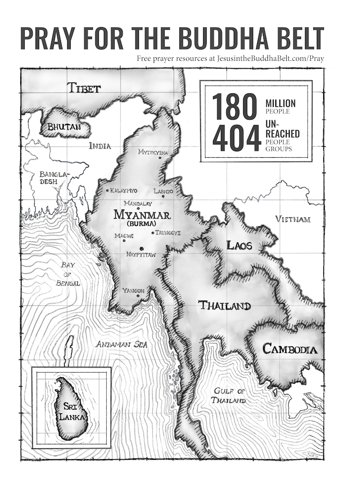 Let us know if you would like to start a new group or join an existing group to pray with others. This is an exploratory initiative with a few extra challenges, but we would love to connect you with a group if we have enough interest. Email us at contact@jesusinthebuddhabelt.com for more info.